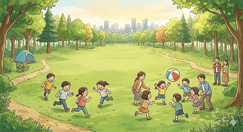- 芝生広場が広大で遊び放題