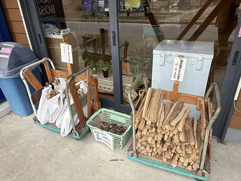 管理棟では薪の販売も行っています。