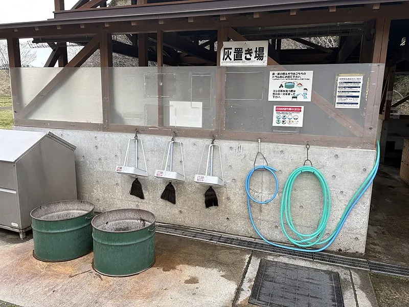- トイレ、炊事場、シャワー、管理棟(薪販売)、宿泊棟