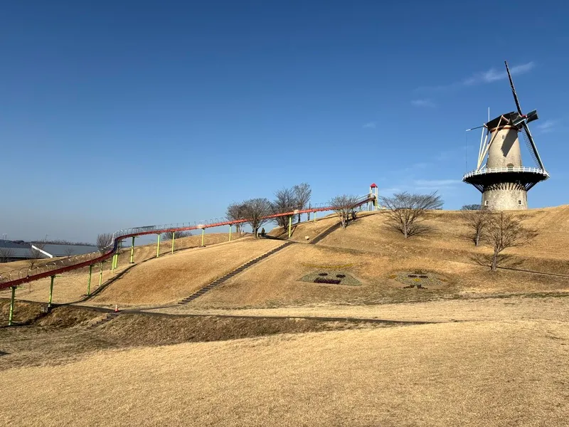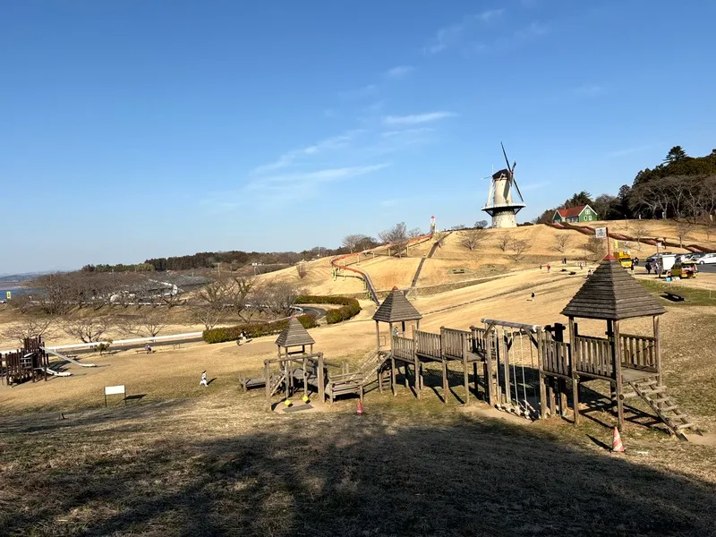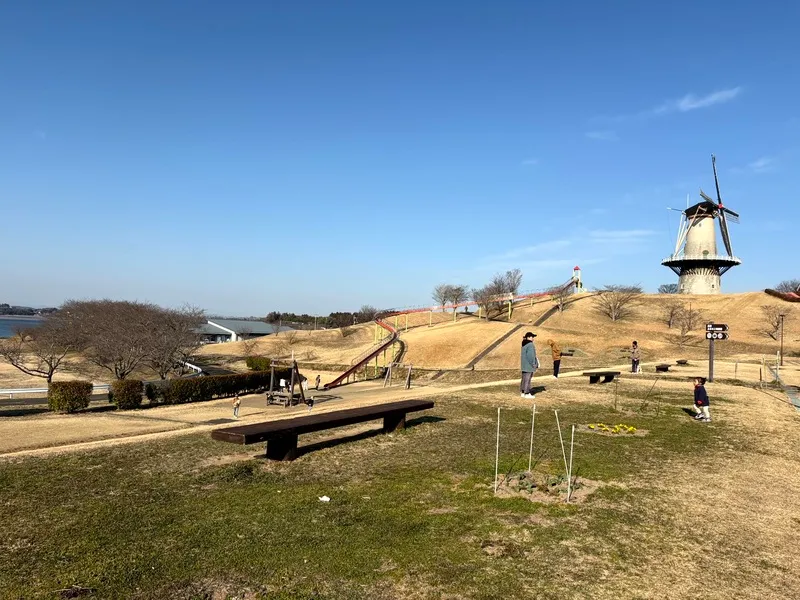 最大の魅力は、高台から見下ろす長沼のレイクビューと、巨大なオランダ風車が間近にある景色です。