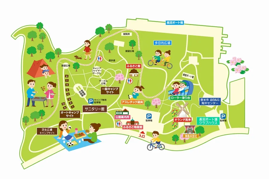 - 園内は遊び場がたくさんでキャンプ以外も楽しめる