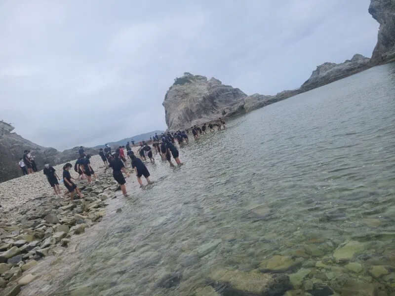 修学旅行生たちがいっぱいいる海岸にたどり着きました。