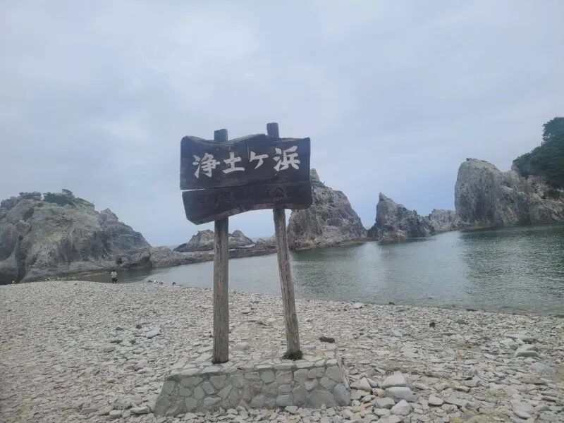 道なりに進んでいくと、浄土ヶ浜と書かれた看板ともに