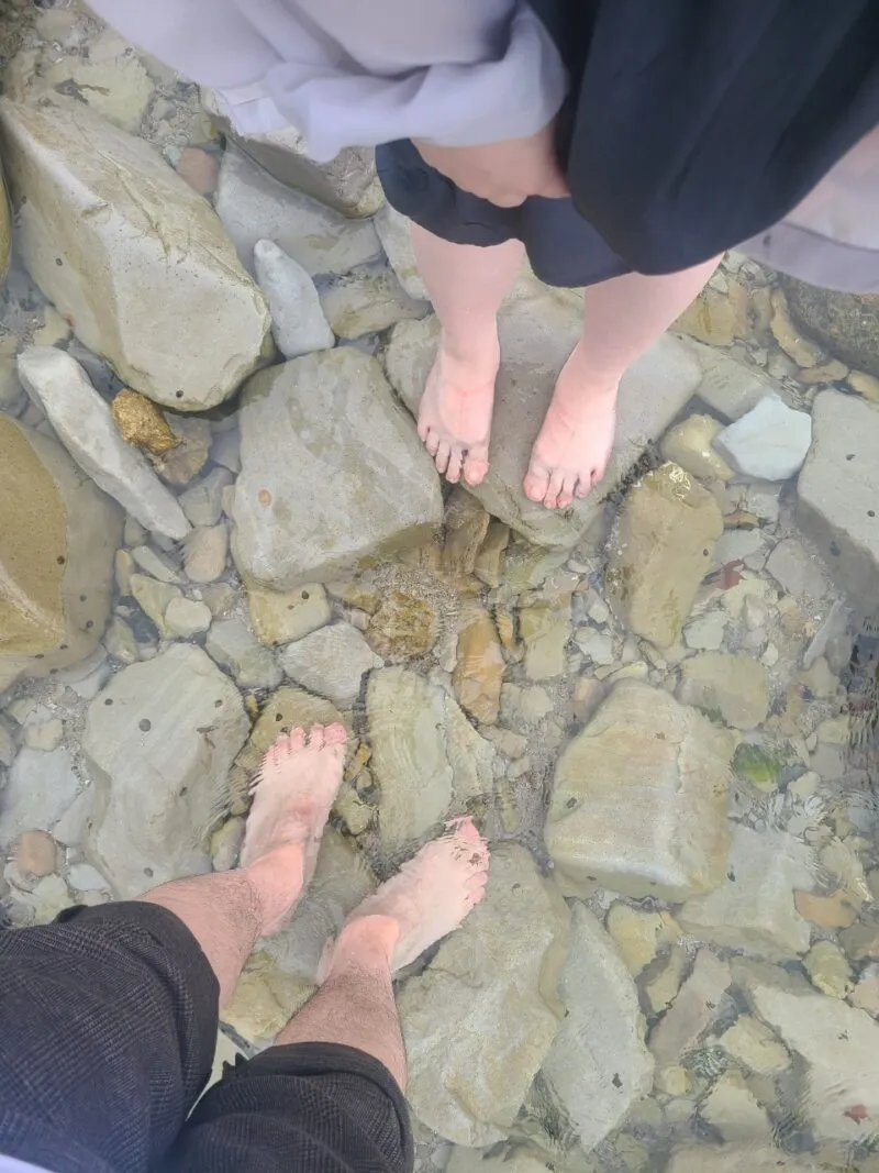 思わず、修学旅行生といっしょに海に入っちゃいました。