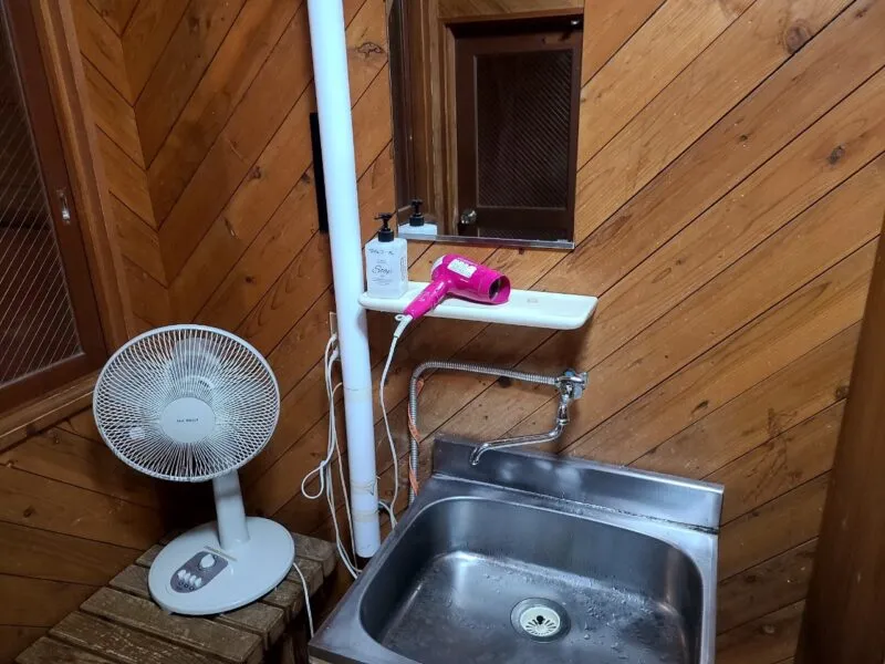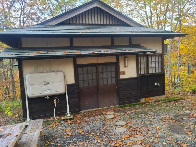 室内にはひと通りの設備が備わっていますが浴室はないので共同の露天風呂を利用します。