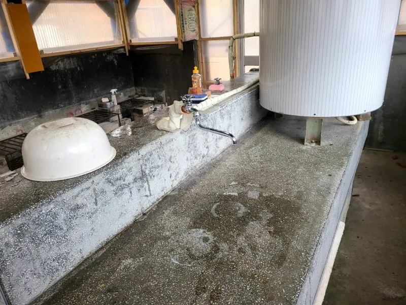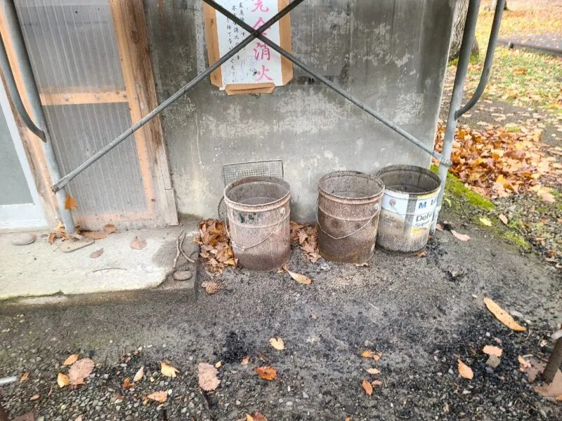 灰捨て場は炊事場南面、入口の横に設置してありました。