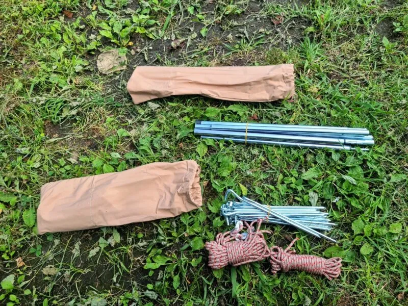 前述でもお伝えしましたが、幕と2本ポール、ロープのみで設営できるシンプルな構造なため、設営も撤収も簡単に済みます。