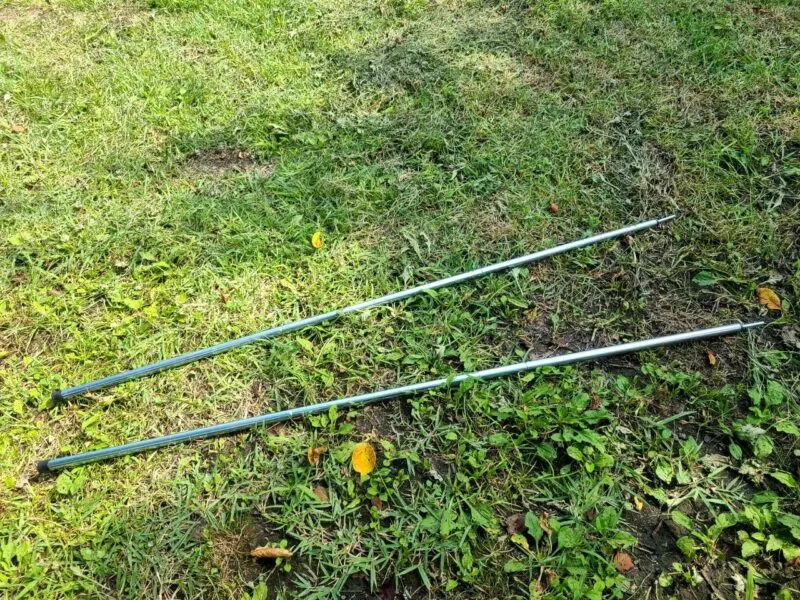 ただ、ポールはメインの2本しか付属していないので、前面を張り出すには別途サブポールの準備が必要です。