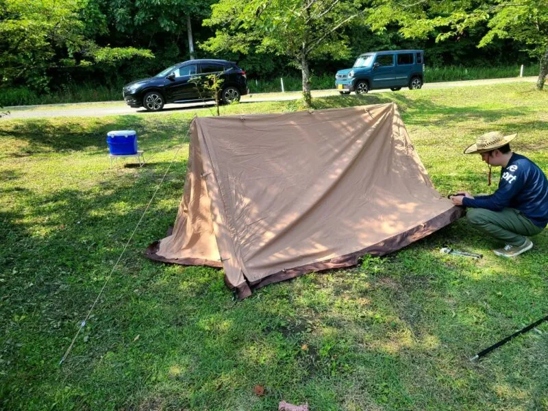 暑い日に設営や撤収に時間がかかってしまうと体力がごっそり削られますが、パップテントなら平気です。