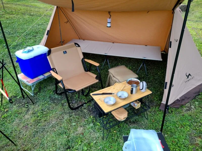 そして意外と女性キャンパーの使用率が高かったのが印象にのこりました。TOMOUNTのパップテントは色合いが可愛いから女性でも使いやすいよ!