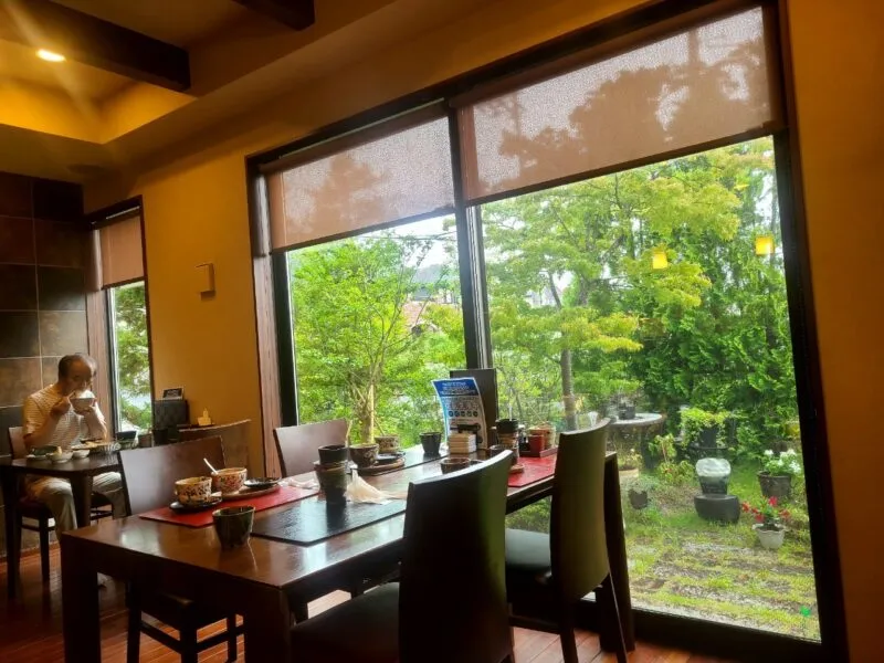 窓に近い席だと中庭をながめながら食事ができそうです。