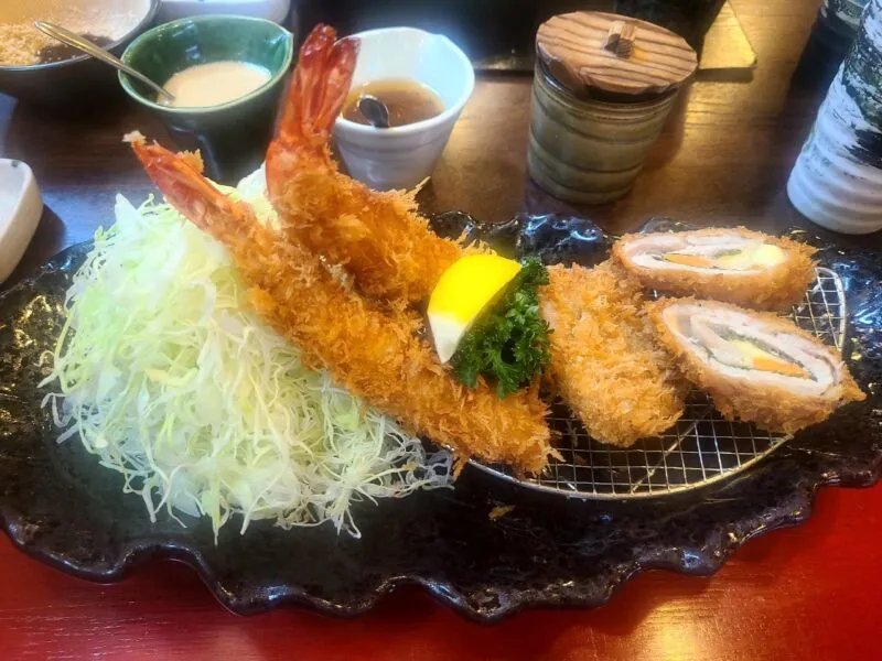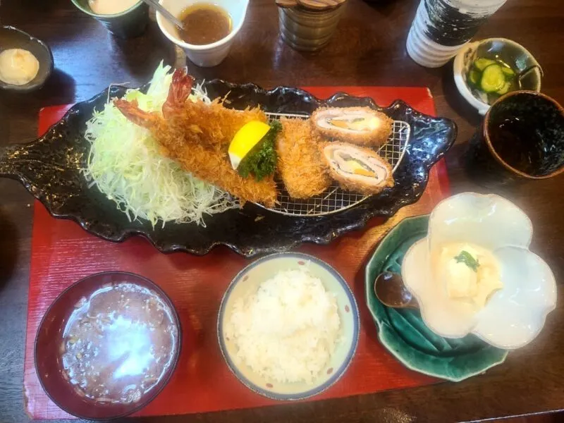 ▲梨庵セットA(海老フライ2尾、ヒレカツ1個、巻カツ2個)