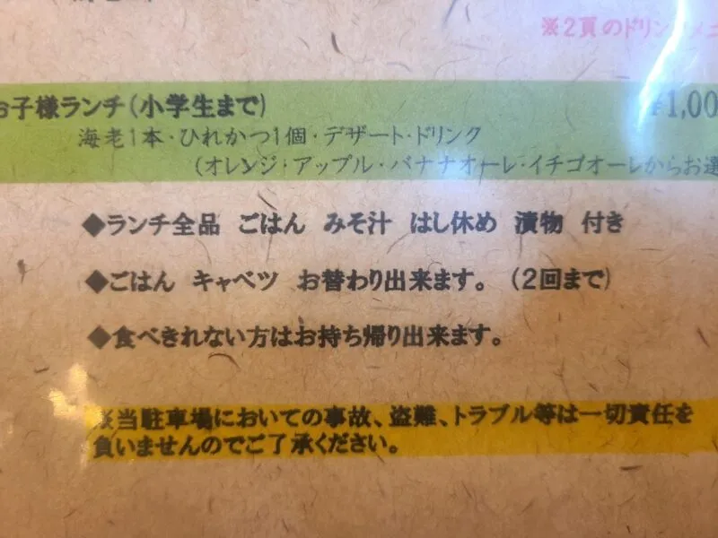 どちらもおすすめのセットメニューのほか、海鮮フライや肉+海鮮フライセット、お子様メニューがあります。