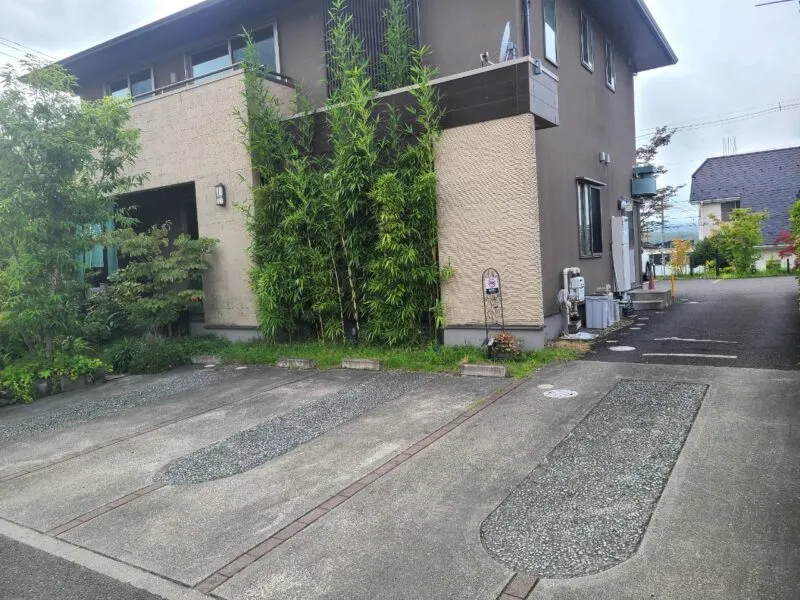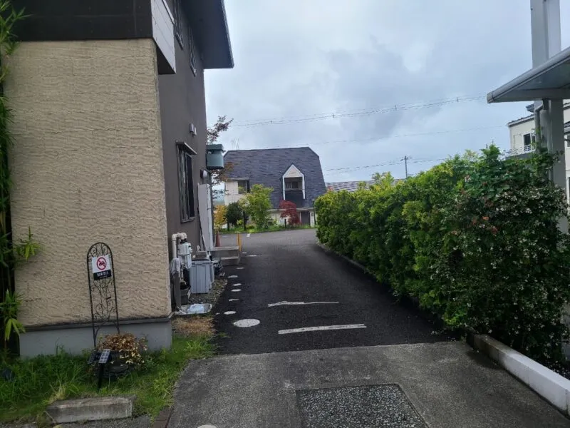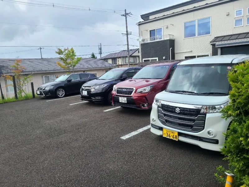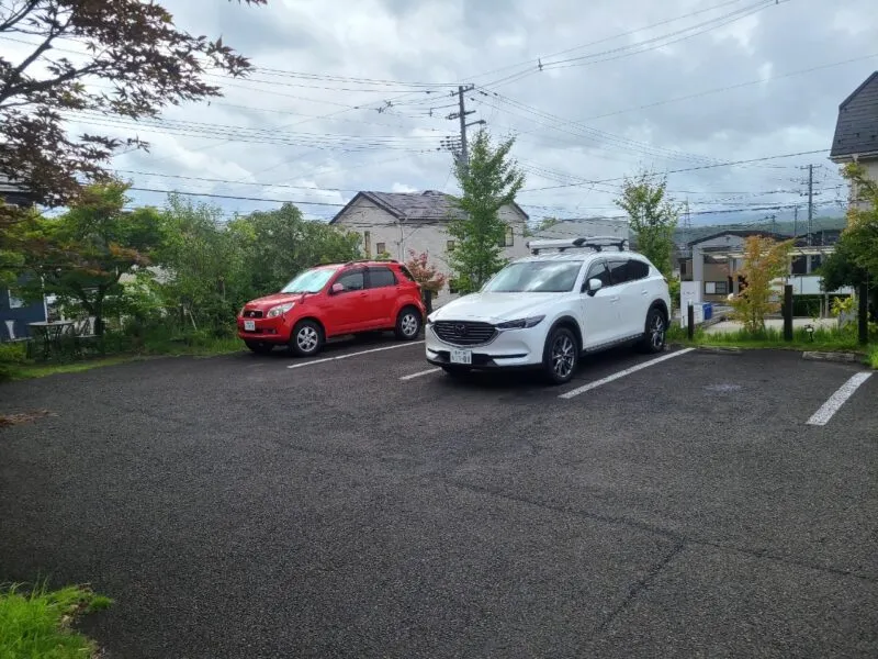 通路が狭いので大きい車は店舗前にとめたほうがいいかも