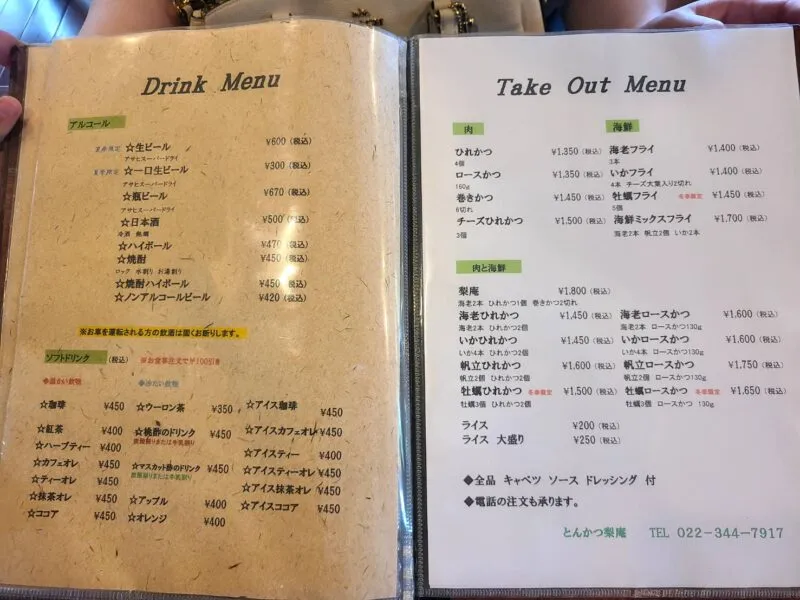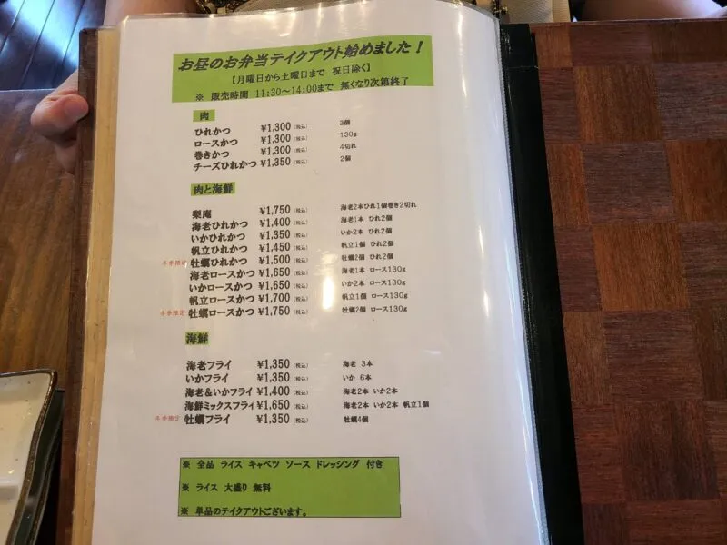 とんかつ梨庵はテイクアウトメニューも豊富です。