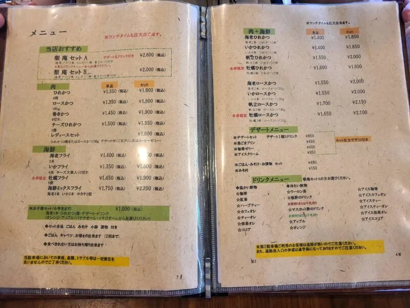 今回は『梨庵セットA』と『ロースかつセット』をいただきました
